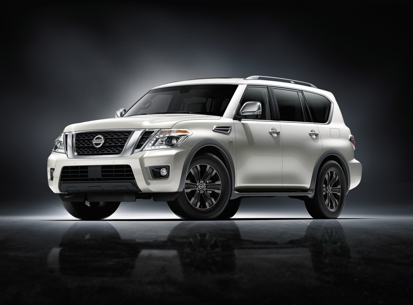 Nissan has kept the Armada lineup easy to understand. There are three trim levels: SV, SL and Platinum, and just four option packages. SV models come with rear wheel drive and a so-called driver package that includes a motorized 60/40 third row seat, fog lights, power lift gate and a trailer towing package with a wiring harness.