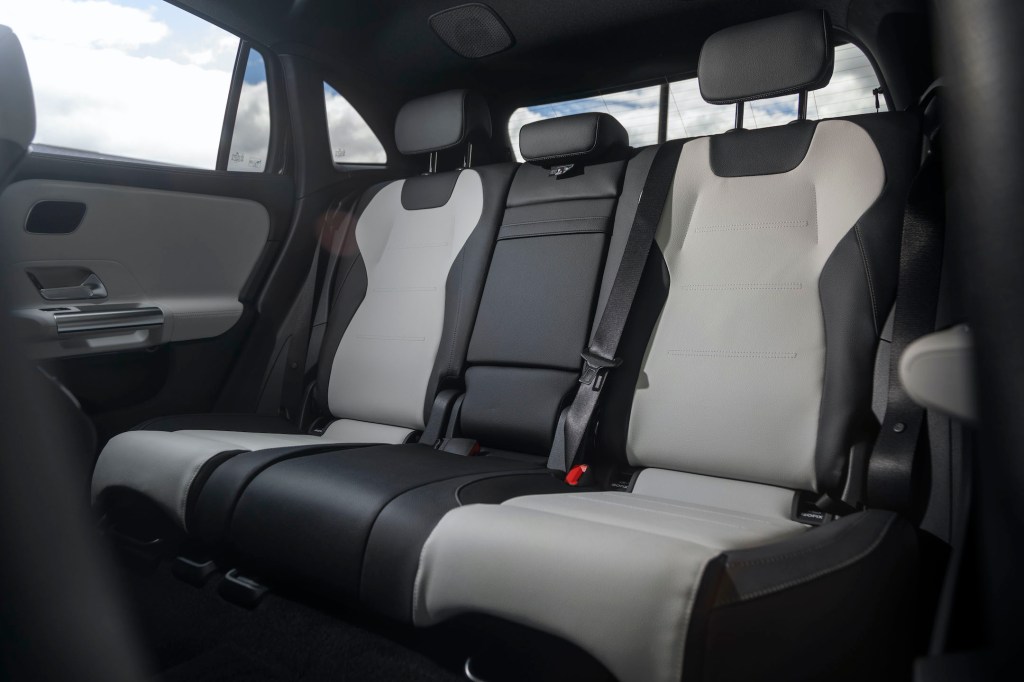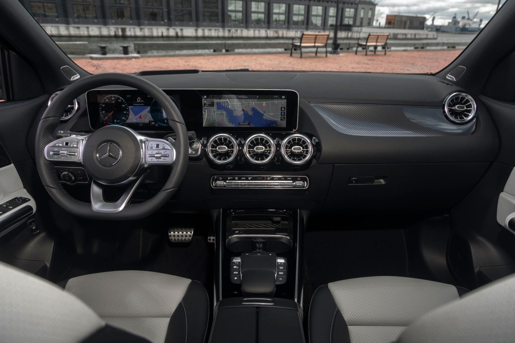 Standard equipment includes such amenities as Bluetooth, Apple CarPlay, Android Auto, and dual-zone automatic climate control. Options on the tested GLA250 included $2,240 for performance AMG body styling, including a classy black diamond grille, and perforated front disc brakes; panorama sunroof (with a flimsy perforated sunshade), navigation system, SXM satellite radio, digital instrument cluster and center display, heated front seats, and auto-dimming inside and outside mirrors.
