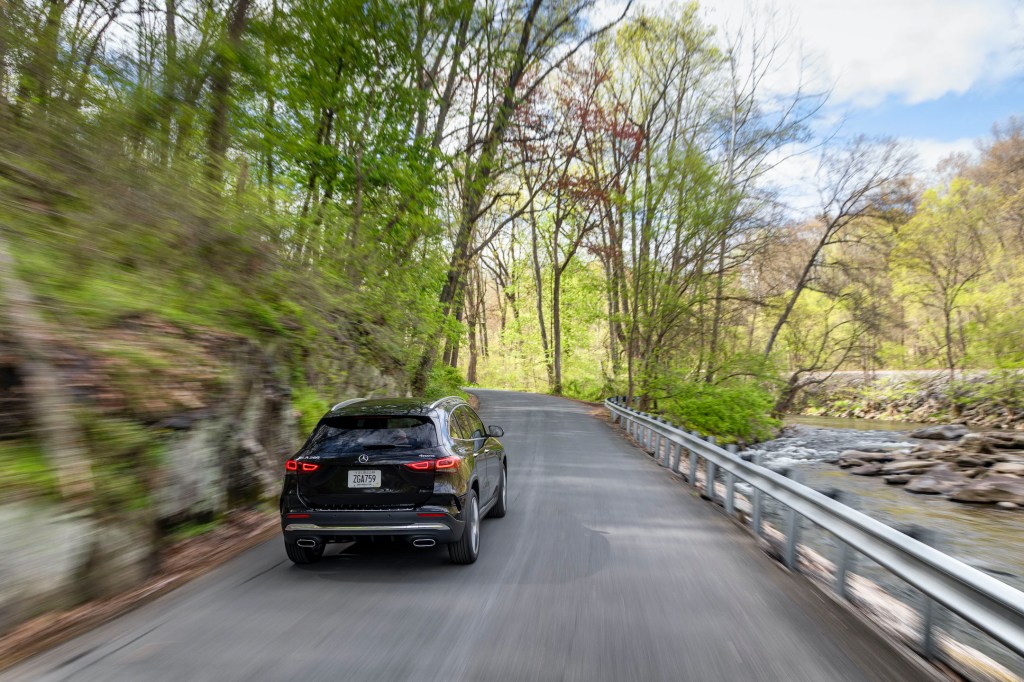 Of course, this is Mercedes engineering and quality, so the fundamentals are present. The GLA250 is powered by a new 2.0-liter turbocharged four-cylinder engine that makes 221 hp and 258 lb-ft of torque, or twisting force. The power makes its way to the front wheels via an also new eight-speed automatic transmission with a manual-shift mode triggered by paddles on the steering wheel. There’s also an all-wheel-drive 4Matic model for an additional $2,000.