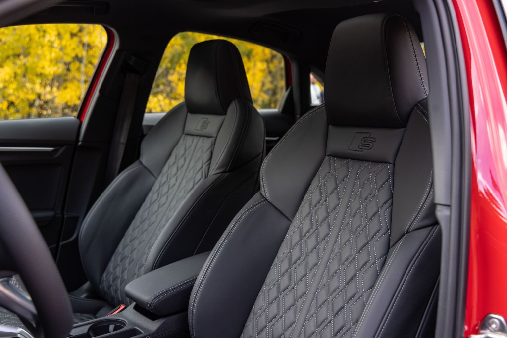 The 2022 S3 reviewed here doesn’t quite measure up to that standard. It has some rougher edges, mainly because it and the A3 are powered by 2.0-liter turbocharged four-cylinder engines. The S3’s makes 306 horsepower and 295 lb-ft of torque, while the RS3 gets Audi’s smoother 2.5-liter five-cylinder engine with 401 hp and 369 lb-ft of torque.
