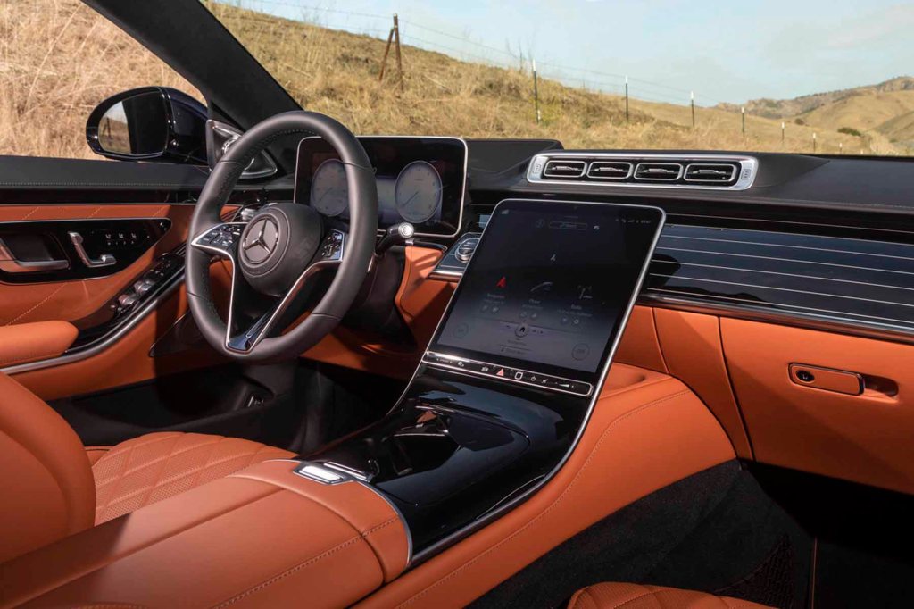 The S580 tested for this review was a 2022 model nearly identical to the 2023 version, which has minor trim changes from its predecessor. It came with stunning dark metallic green paint with flecks of gold that looks black from a distance. Its 17 feet 4 inches of body houses 120 cubic feet of space for five passengers in sumptuous comfort as well as a trunk of 13 cubic feet.