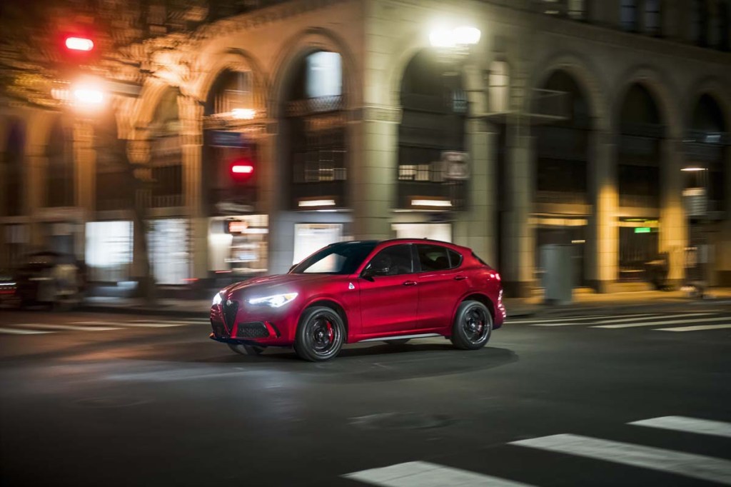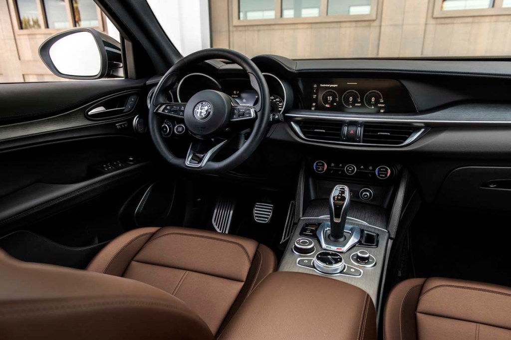 The tested Estrema is equipped with adaptive shock absorbers and a limited-slip differential borrowed from the high-zoot 505-horsepower Stelvio Quadrifoglio. They augment the Stelvio Estrema’s hole card: glue-like adhesion around curves that makes for sharp handling and a surprisingly compliant ride.