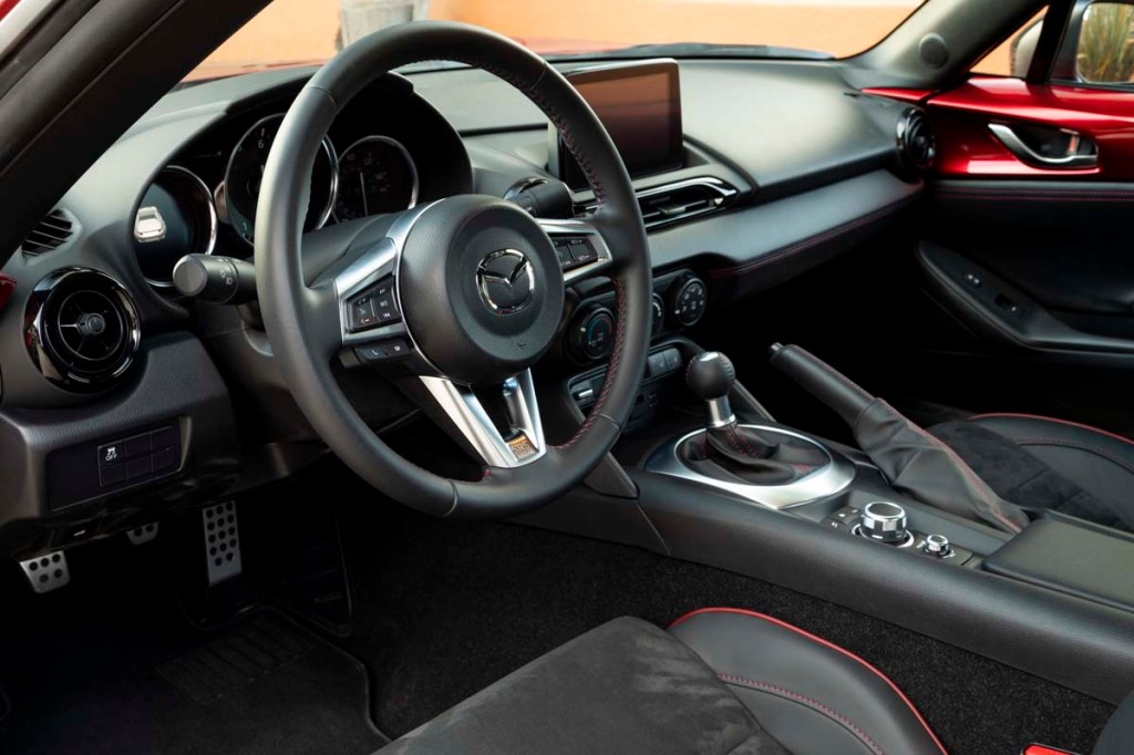 The tested MX-5 Club came well equipped off the assembly line with safety and driver assistance equipment that included automatic emergency braking with forward collision warning, blind-spot monitoring, rear-cross traffic alert, tire-pressure monitoring and standard lane-departure warning.