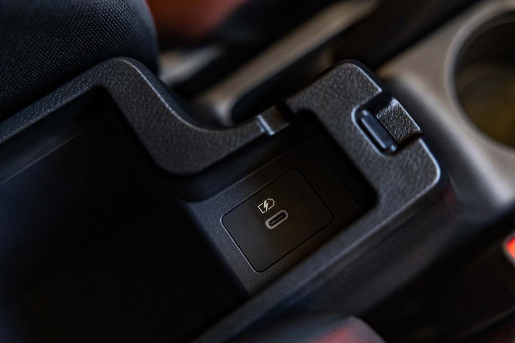 There’s even a plethora of charging ports. A total of four USB charging ports (three up front, one in the rear) adorn the cabin, along with a 12-volt cigarette lighter connection. One USB port is located in the center console and could serve a second rider in the rear if they have a long enough cable.